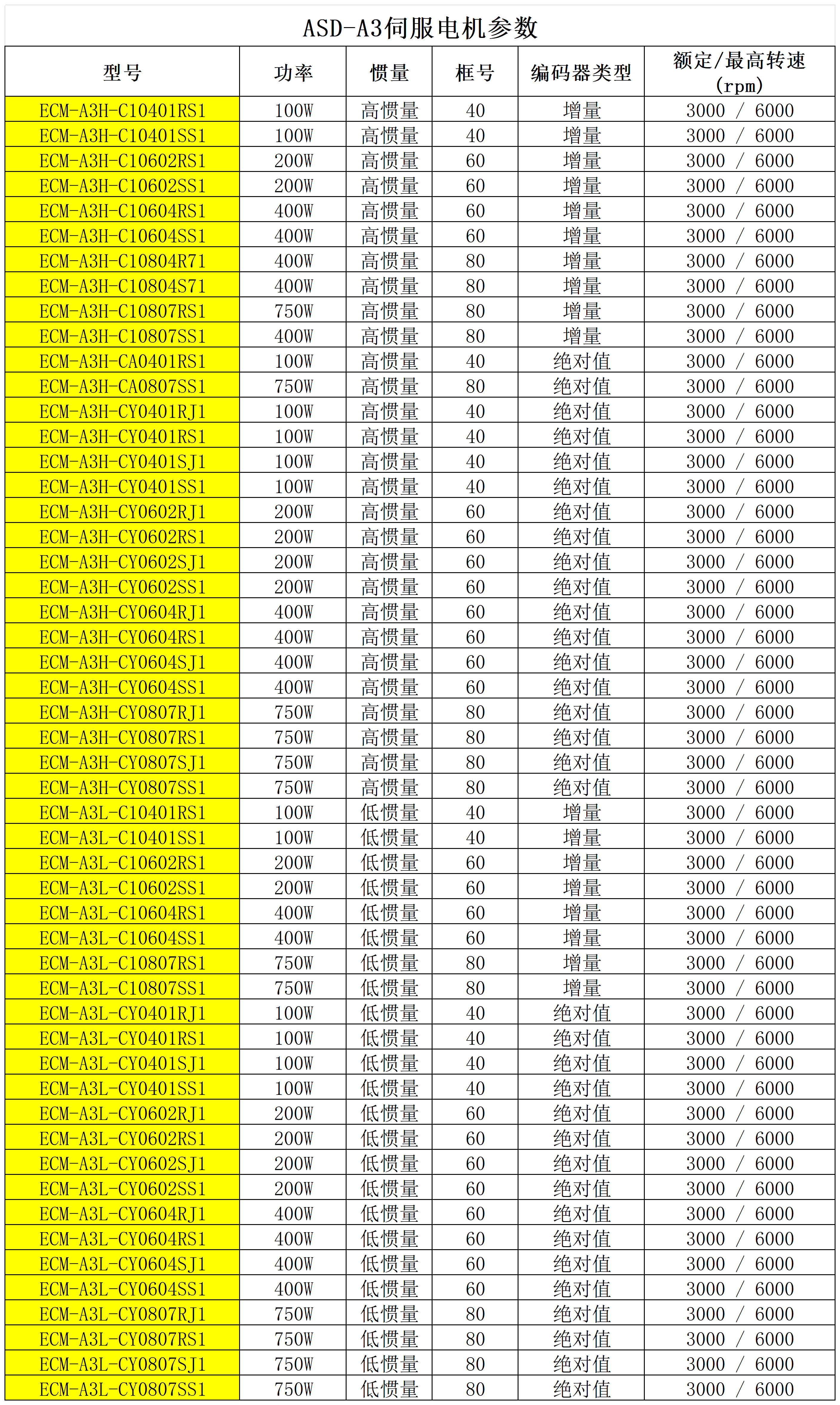 ECM-A3L-CY0604SS1臺達A3絕對值伺服ECM-A3L-CY0604RS1